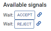 The above procedure creates only basic signals for the assessor. In practice, you could include the signals (as URLs) in an e-mail so that the recipient can respond to them, thus completing the workflow. Then, the Expression for the Assessment step could look something like this: