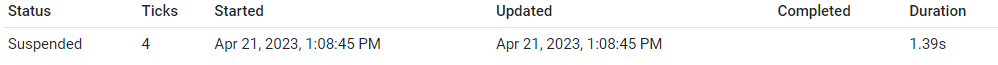 100001.Click Restart. ↳ The workflow starts but suspends itself after a while as an indication that it is waiting: