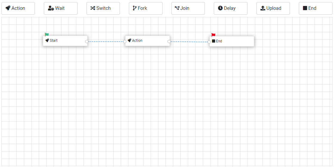 A workflow comprises connected steps that execute from the Start to the End steps. You build a workflow by dragging, connecting, and defining steps on the Workflow canvas:
