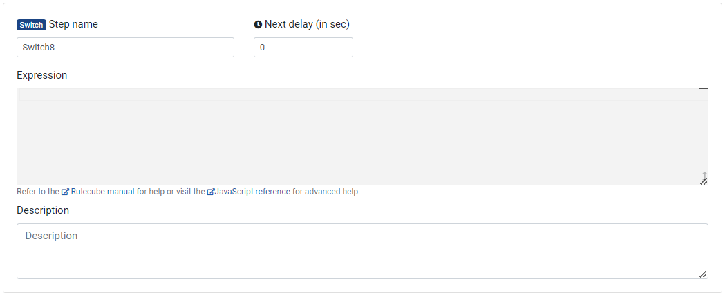 ↳ Rulecube gives the step a default name.Select the Switch step. ↳ The Switch details section opens: