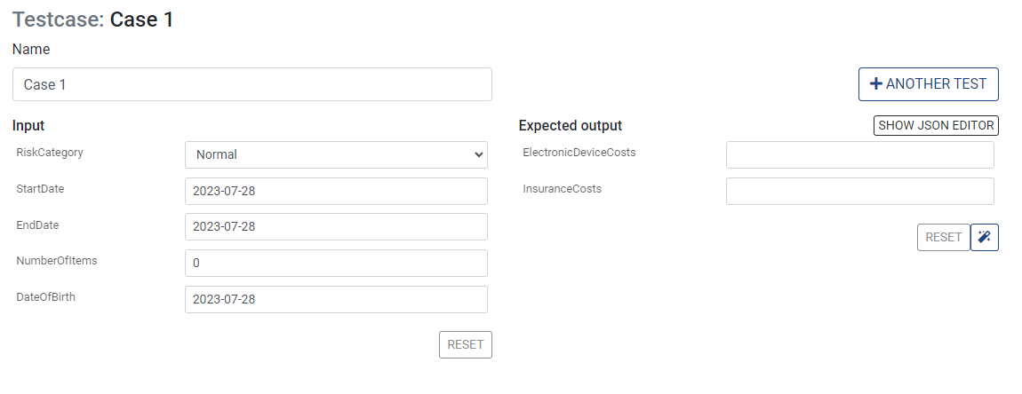 Now we need to define what we expect ElectronicDeviceCosts and InsuranceCosts to be. We could manually fill this in, but since this our first time with this Testcase, we can create a so-called baseline by clicking this button: